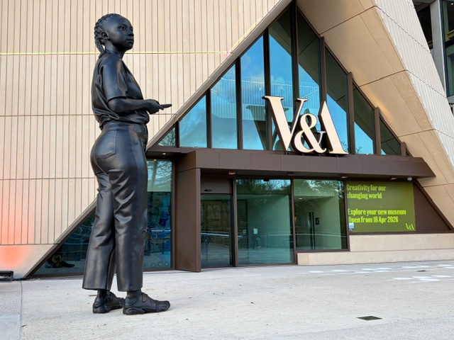 Sculpture ‘A Place Beyond’ by artist Thomas J Price, outside of London’s V&A East.